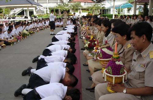 (泰國的教師節,學生給老師行大禮)
