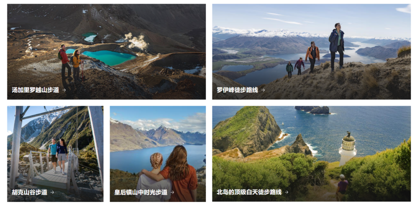 下圖是從新西蘭政府的官網上,他們推薦的徒步路線,我國的風景地貌其實遠遠的超過,但是似乎卻沒有全國乃至全球知名的徒步路線,像著名的川西314國道並不適合徒步,並沒有專門的步道,車來車往很危險。