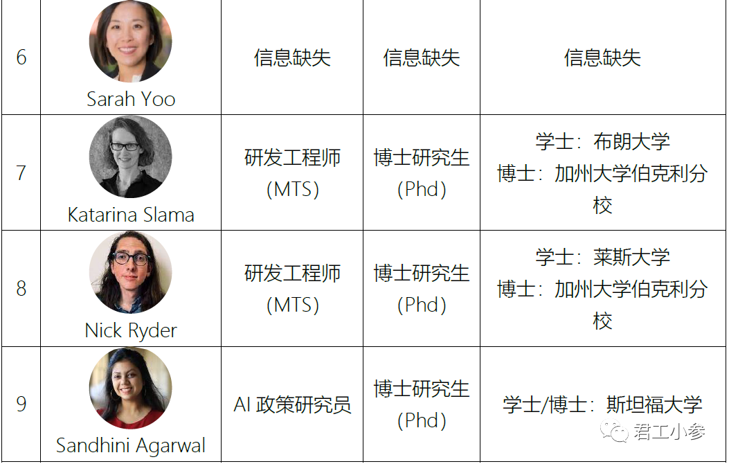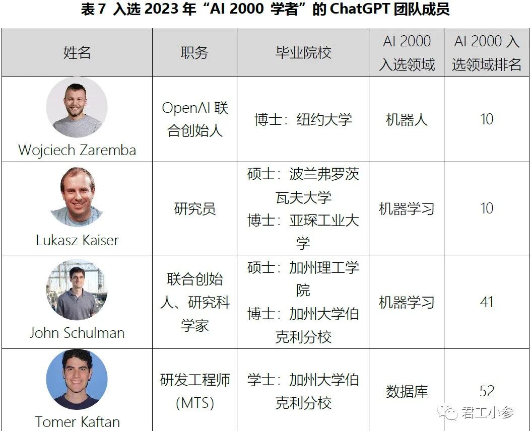 ChatGPT 團隊規模不足百人(共87人)。分析發現,其顯著特徵是“年紀很輕”、“背景豪華”、“聚焦技術”、“積累深厚”、“崇尚創業”和“華人搶眼”。