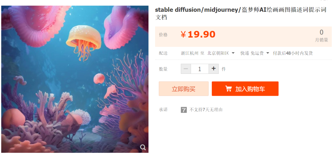 另外,由於一些國外AI繪畫的網站在關鍵詞上有着嚴格的要求,進而在淘寶等電商網站中誕生了一批專門售賣“高級、簡便、創意”的AI繪圖提示,一般定價在10元-20元之間。