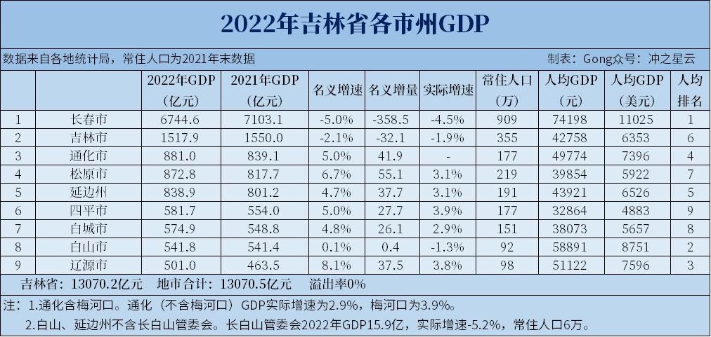 2022年吉林各市GDP和人均GDP,流年不利,期盼來年再振雄風_風聞