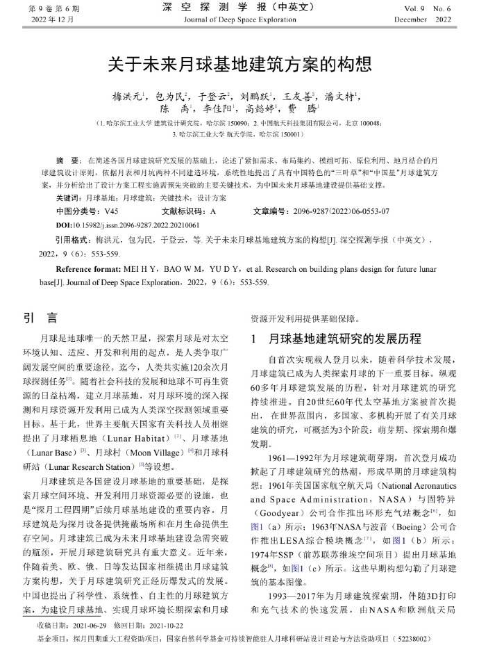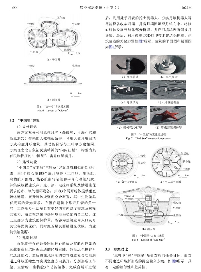 基於月球建築的特點和設計原則,依據月表、月坑兩種類型建造環境,分別提出了最具特色的“三葉草”和“中國星”兩種月球建築方案。