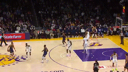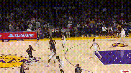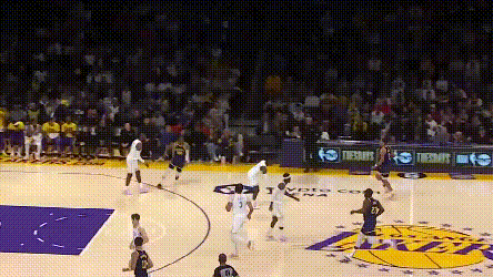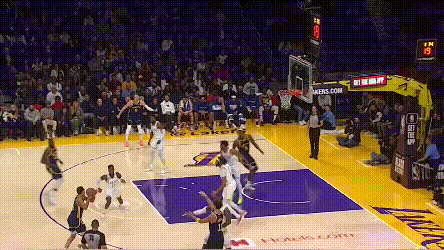 當然了,按照球迷傳統,輸球要先從普爾身上找原因。**普爾的主要問題是可緩非急。**第三節是典型,普爾的若干擋拆本可以在進入三分線後減速,關注一下掩護人的位置,打出一些更勇士的配合。比如,這次鑽人縫的突破,已經完全破壞了上線防守,他本不用硬鋼濃眉,可以給跟進支援的追夢,或者分到對側45°的迪温琴佐。