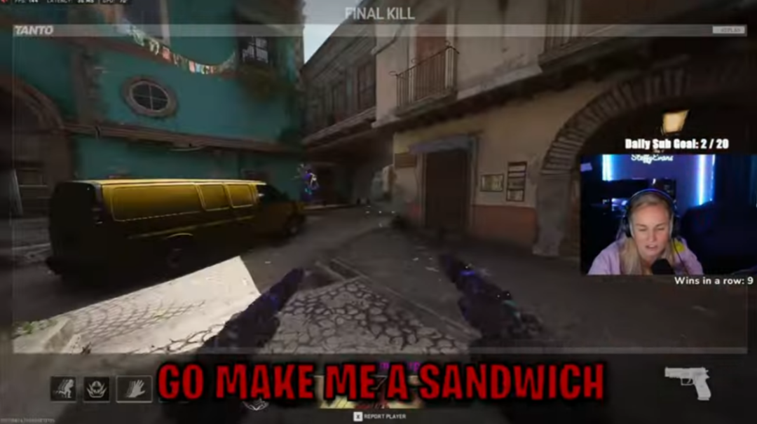 SteffyEvans自然很清楚COD中女性玩家的處境和狀況——所謂“Make me a sandwich”只是她們所遭遇的冰山一角,用詞也是最温柔的那類。畢竟她聲稱每十局遊戲中,有七局會遇到針對性別的嘲諷。