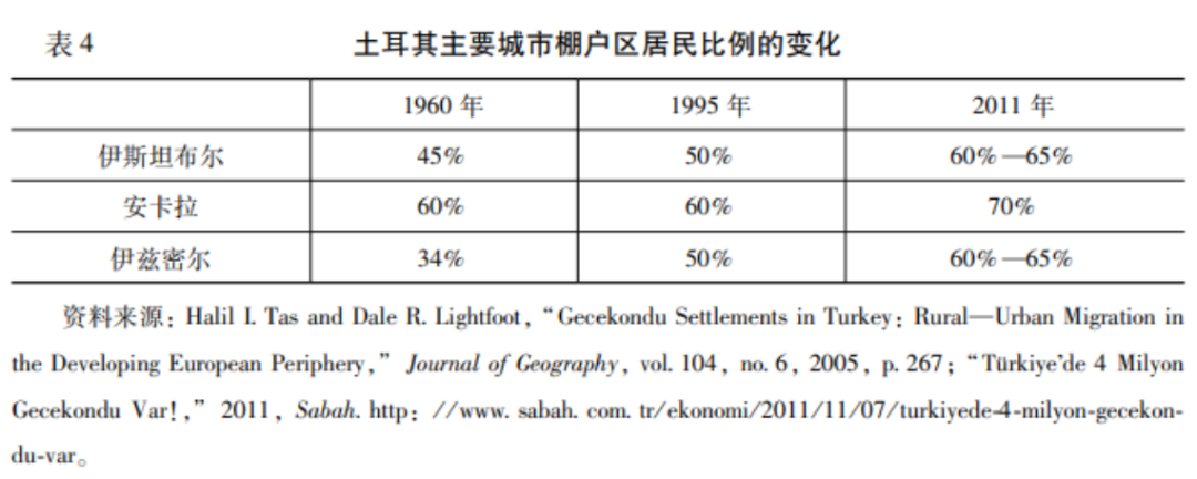 早在1960年,伊斯坦布爾、安卡拉、伊茲密爾三大都市的棚户區居民比例就已經高達45%、60%和34%,到了2000年,土耳其約有1000萬棟**(約佔全國總建成房屋的62%)房屋都是違章建築**。