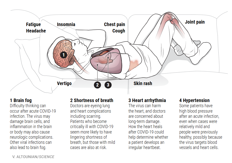 《科學》雜誌相關研究文章標註最常見的幾個新冠後遺症症狀,下同出處