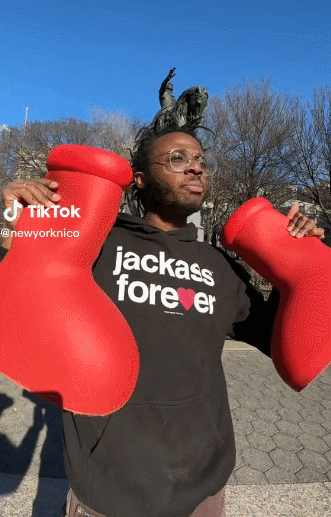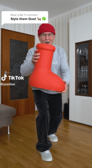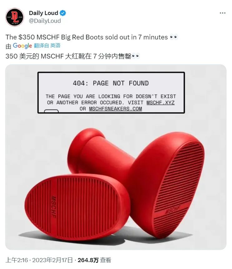 前不久,MSCHF該品牌發佈了一雙長筒橡膠大紅靴,在外網沸沸揚揚。