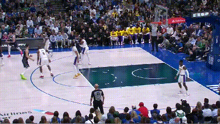 **範德彪不是東契奇難受的唯一理由,讓東契奇左右為難的,是範德彪+濃眉這對組合。**湖人的策略是德彪領,濃眉換,兩人身高臂長,都可以罩住東契奇,讓他沒法在中距離玩翻身跳投。送他進入內線,還有另一個人協防護筐。不管是濃眉,還是範德彪,他們的防空能力都足以切斷東契奇與鮑威爾的連線,使得獨行俠中路擋拆缺少了空接變化,無法對籃筐形成實質威脅。於是,東契奇在突破中只能往外線找隊友,但在沒有充分改變陣型,吸引湖人足夠多防守人到籃下的情況下,突分是很難成功的,分球極容易被抄截,最後變成一次失誤。