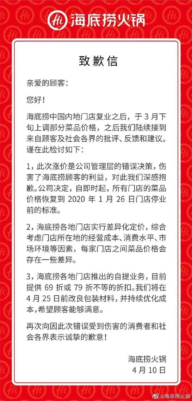海底撈這則通告,表面上看,釋放了一個信號:火鍋(餐飲)行業在復甦。