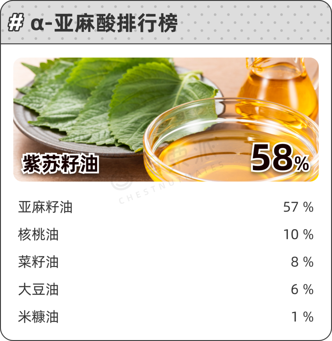 核桃油、菜籽油、大豆油在第二梯隊,但ALA的含量都低於10%。