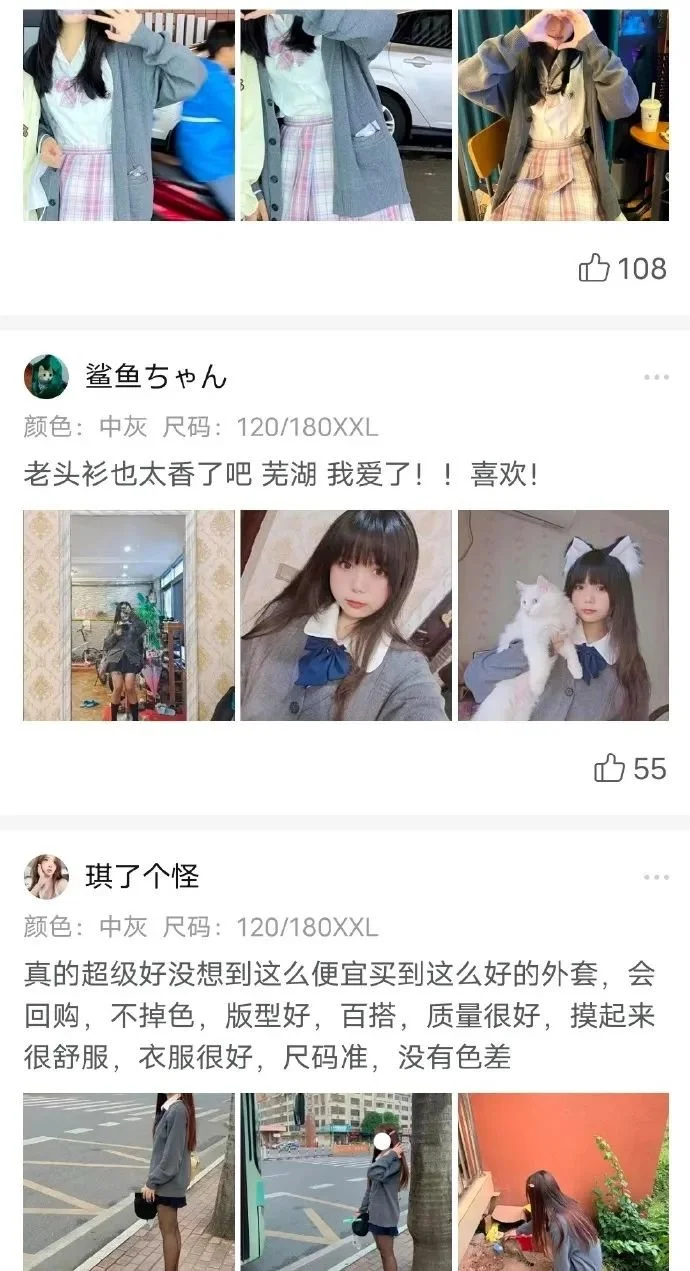 中老年男士開衫的熱門買家秀裏,驚現無數JK女高中生返圖好評…_風聞