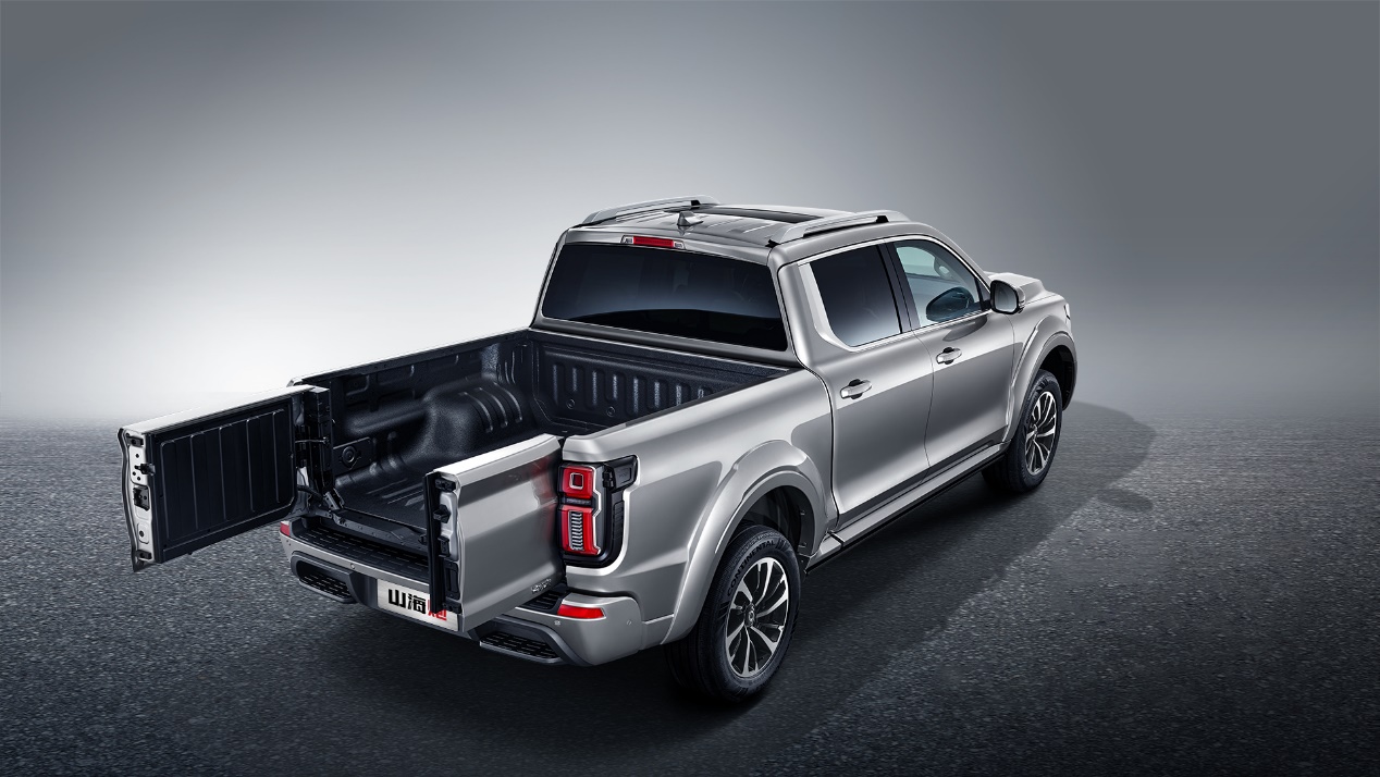 山海炮首創後車箱擋板對開+平開設計,提供多場景使用便利性。擋板對開可讓用户在户外存取物品時,更為得心應手;而擋板平開時,用户完全可以坐在擋板上細細品味户外生活的美好。此外,山海炮採用國內首創三開門平蓋式防雨棚,電動控制,可拆卸隔斷,增加空間百變性,玩轉全場景皮卡生活。