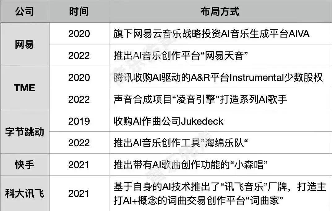 在國內,這一賽道的入局者更多。字節跳動收購了AI作曲公司Jukedeck;“唱鴨”基於華為獨創的AI Singer模型,讓用户只需輸入歌詞就能完成創作;網易還推出了網易天音,並上線“網易天音”拜年小程序,讓用户輸入歌詞即可生成拜年歌,並用AI歌手進行演唱;快手也自主研究了AI音樂創作模型和AI歌手,並推出“小森唱”,通過AI為用户打造專屬歌曲 。
