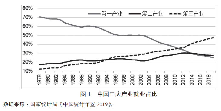其一,勞動成本上升、出口環境變化和“30·60”碳目標要求產業結構調整和技術升級,導致第一產業和第二產業剩餘勞動力進一步釋放。其二,一些國有企業混合所有制改革和技術升級造成的隱性失業呈顯性化趨勢。其三,政府職能轉換、政務數字化升級,以及一些地方政府高負債率、土地財政難以為繼等因素推動機構精簡。其四,生產性服務業內也盛行技術對勞動的替代。相比較而言,消費服務業作為面對面的勞動密集型行業仍有巨大發展空間。但是,消費服務業發展同時受到供需兩側瓶頸約束:需求側上,服務消費需求的釋放相對緩慢,其除了受制於人口年齡結構和收入結構外,還因消費服務需要同時支付金錢和閒暇時間,部分高收入階層受到“有錢沒有閒”的約束,將此類需求變成了海外奢侈品的補償性需求。供給側上則缺乏優秀企業組織,並且技能和素質相適應的勞動力供給瓶頸也在一定程度上限制了消費服務業的發展。