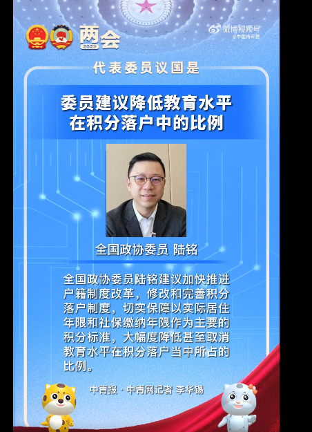 委員建議降低教育水平在積分落户中的比例,各位怎麼看?_風聞