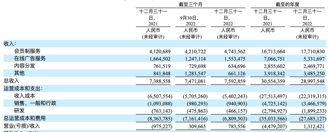 細看財報其實不難發現,能讓愛奇藝在過去一年真正實現了由虧轉盈的核心推動力其實只有一樣——訂閲會員。