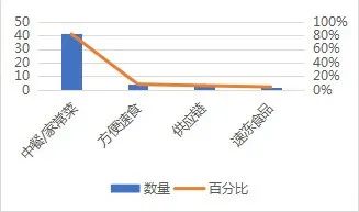 從本次上榜的品牌看,大致可分為四類:中餐/家常菜、方便速食、供應鏈、速凍食品。分別佔比82%、8%、6%、4%。