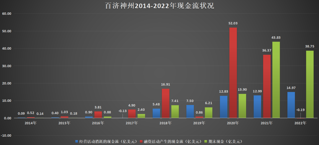 圖:百濟神州歷年現金流情況,來源:公司財報,錦緞研究院