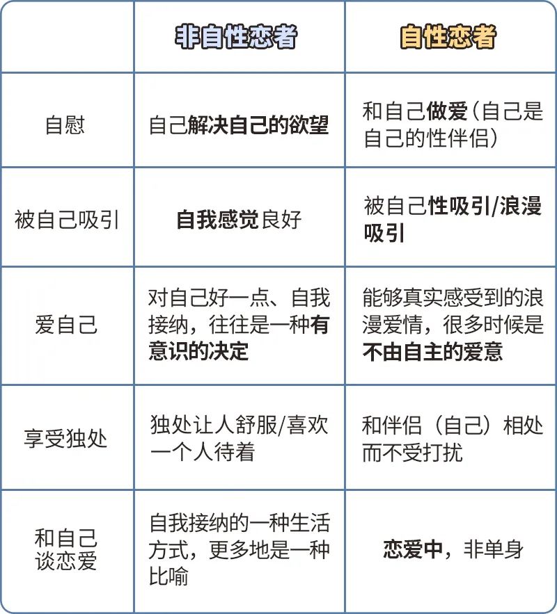 這些描述可能還不足以讓我們切身體會自性戀者的真實感受。畢竟,我們也會用“愛自己”這樣的詞彙,來進行日常的自我關懷。
