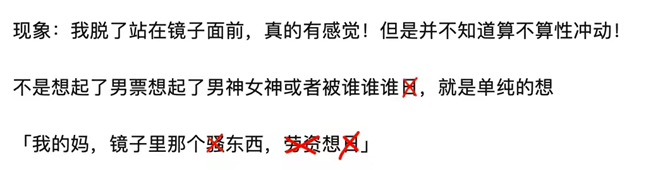盯着鏡子裏自己的眼睛、嘴唇,就會產生慾望,想要親吻和愛撫自己。很想變出另一個自己跟自己做不可描述的事情。