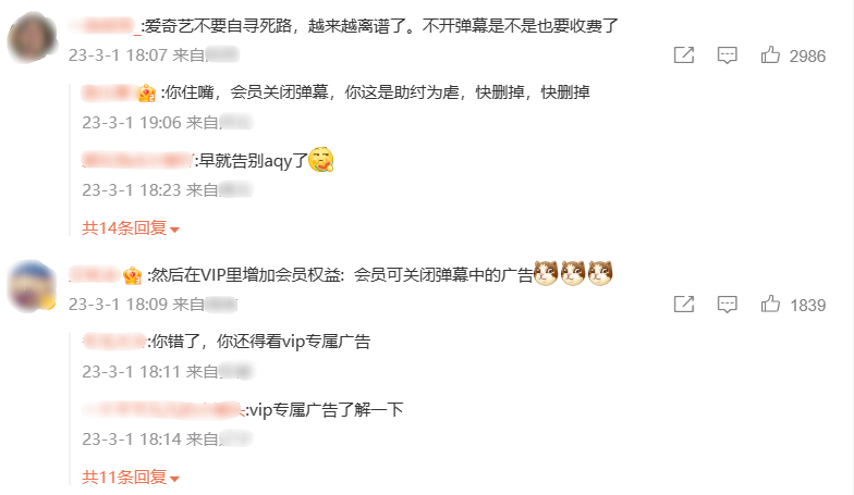 還有人調侃,説以後愛奇藝可以給VIP加一項會員權益:會員可關閉彈幕中的廣告。
