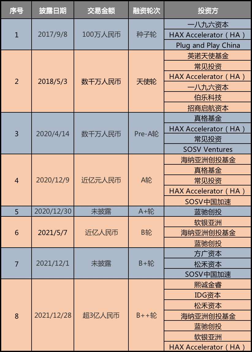 盤點其過往的融資經歷,五年之內融資8輪,雖然就目前已披露的金額來看,一年比一年高,但投資方來來往往,一些新面孔湧入,曾經的老股東目前只剩HAX還在追投,優艾智合急需提高自身的造血能力。