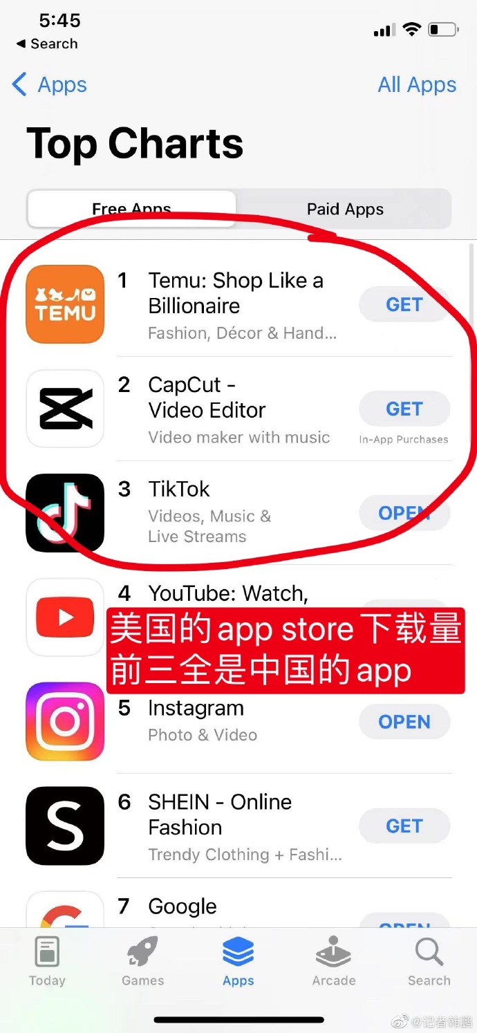 美國心態該崩了吧,現在美國下載量最高的app,前三都是中國的!_風聞