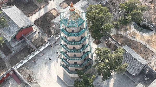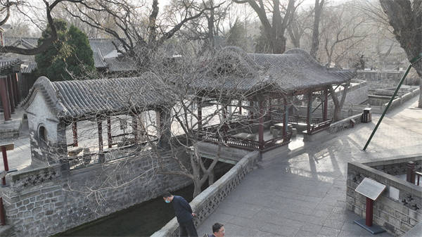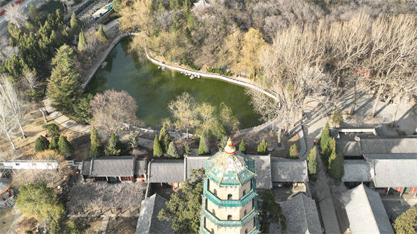 南部從勝瀛樓起,有白鶴亭、三聖祠、真趣亭、難老泉亭、水母樓和公輸子祠。這一組樓台計峙,泉流潺繞,頗具江南園林風韻。此外最南部還有十方奉聖禪寺,相傳原為唐代開國大將尉遲恭的別墅。祠北浮屠院內有舍利生生塔一座,初建於隋開皇年間,宋代重修,清代乾隆年間重建,為七級八角形,高30餘米,每層四面有門,飾以琉璃勾欄。