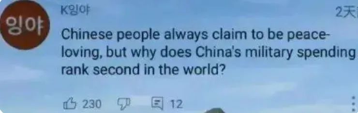 此前,在獲悉中國軍費增長幅度後,一個韓國網友竟然在社交媒體發出“靈魂拷問”:“中國人總是聲稱愛好和平,但為什麼中國軍費開支居世界第二?”