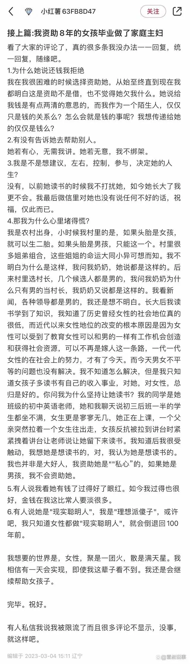 那個被資助了8年的女畢業生做了家庭主婦?_風聞