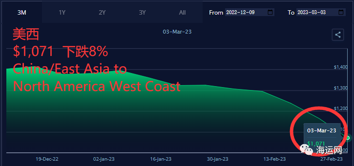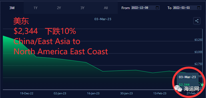 最新波羅的海運價指數FBX顯示,中國至洛杉磯的運價下滑8%已跌到1071美元/FEU,遠低於去年同期的15898美元。美東下滑10%至2344美元/FEU,也遠低於去年同期的18020美元。