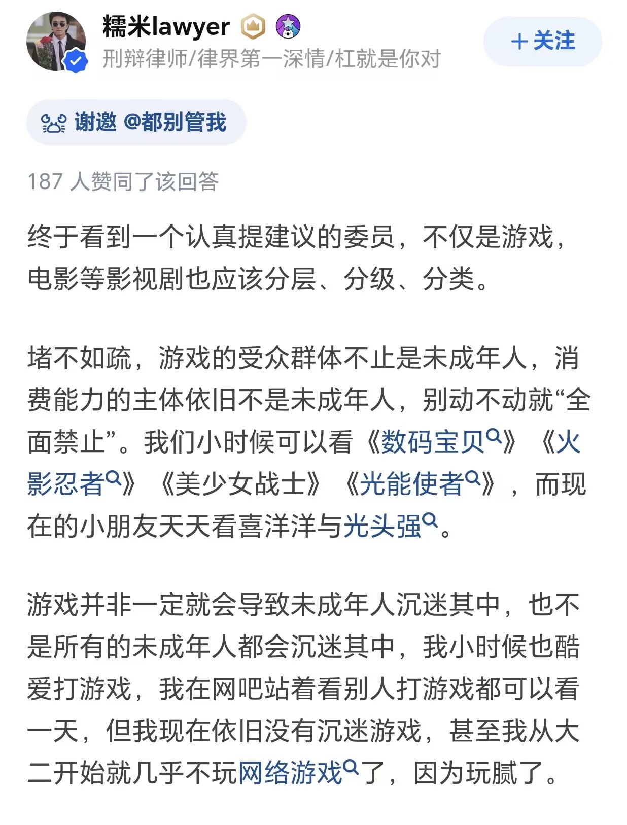 也有網友稱,這位代表提出的建議確實比直接不讓未成年人遊玩遊戲要好,畢竟與其嚴格限制,不如建立好分級分類,讓不同年齡的孩子們能夠遊玩到適合自己的遊戲。