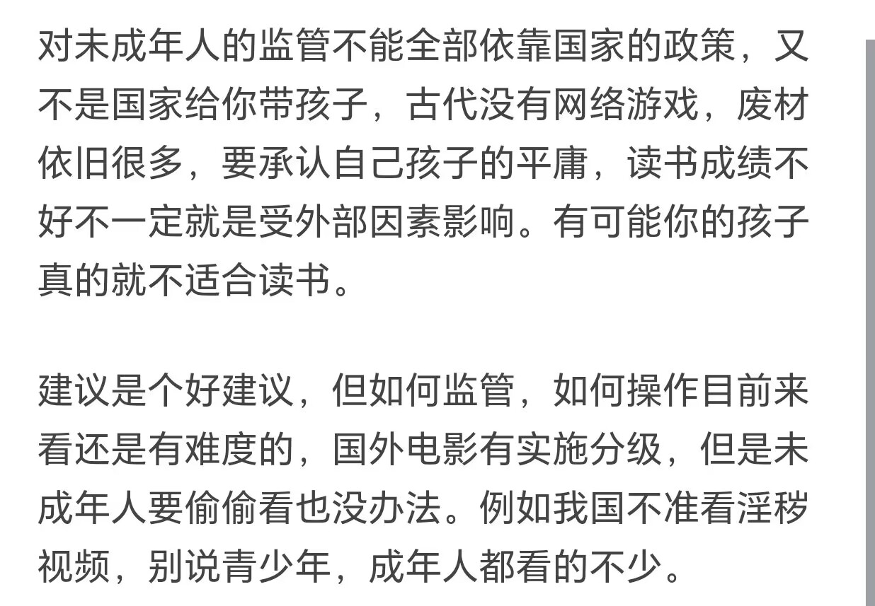 面對這樣的提議,一些網友都表示,早就該如此這麼幹了。甚至不止是未成年人,面向成年的人的一些內容應該做好分類分級。