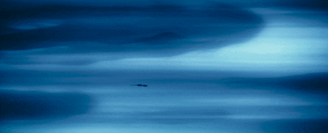 丁·賈林和古古駕駛飛船超空間躍遷,周圍巨型生物普爾褶鯨若隱若現。