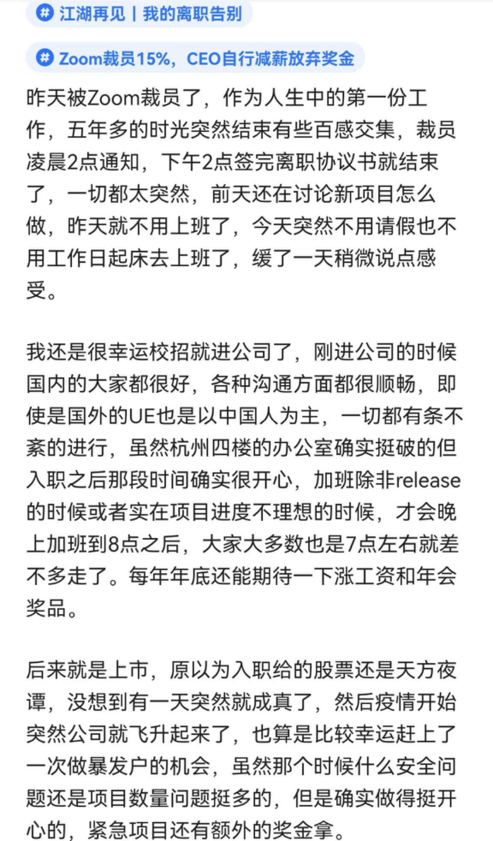 一位Zoom前員工的自述 圖片來源:脈脈