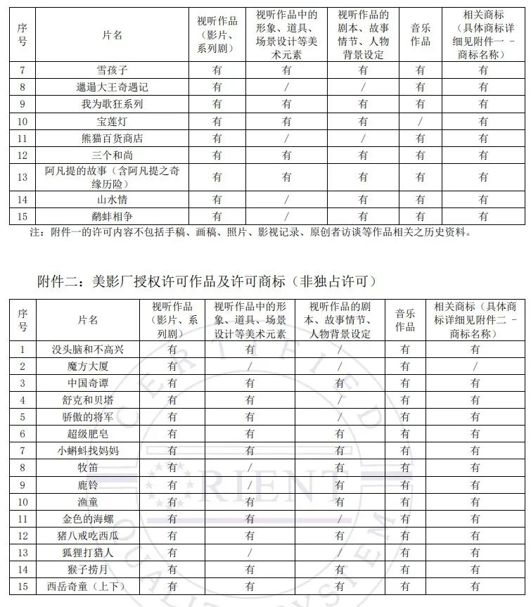 這些作品中,包括修復後在影院上映的《大鬧天宮》《天書奇譚》以及出現在視頻平台上的其它經典動畫,全新故事的電影《阿凡提之奇緣歷險》《黑貓警長之翡翠之星》,網絡動畫《新葫蘆兄弟》《我為歌狂之旋律重啓》。另外,《新雪孩子》《新邋遢大王》和《斑羚飛渡》皆在製作中,《中國奇譚》第二季也在籌備中。
