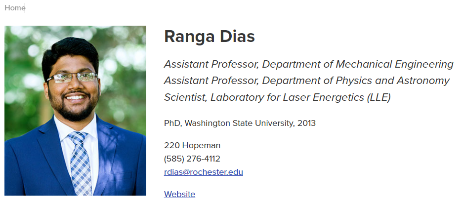 蘭加·迪亞斯教授(圖片來源:羅徹斯特大學官網)