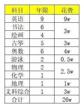“雞娃”總花銷:26萬元