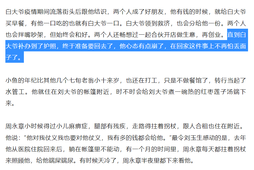 而劉玉生之所以“想回家”,也是因為白大爺補辦好了護照,準備回家,觸動了他。