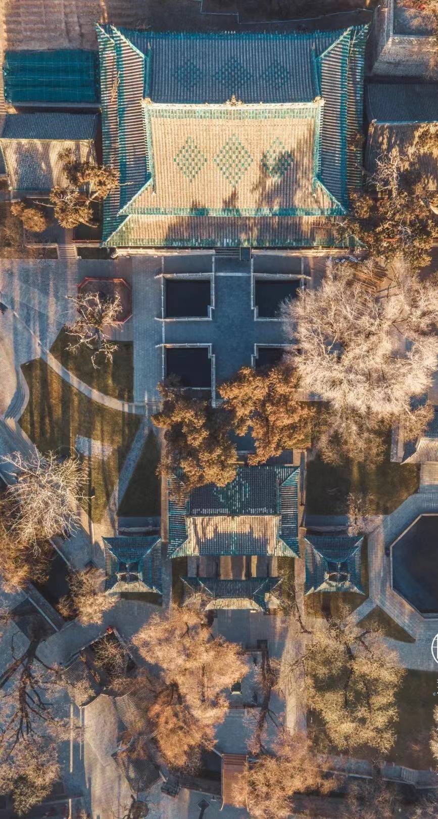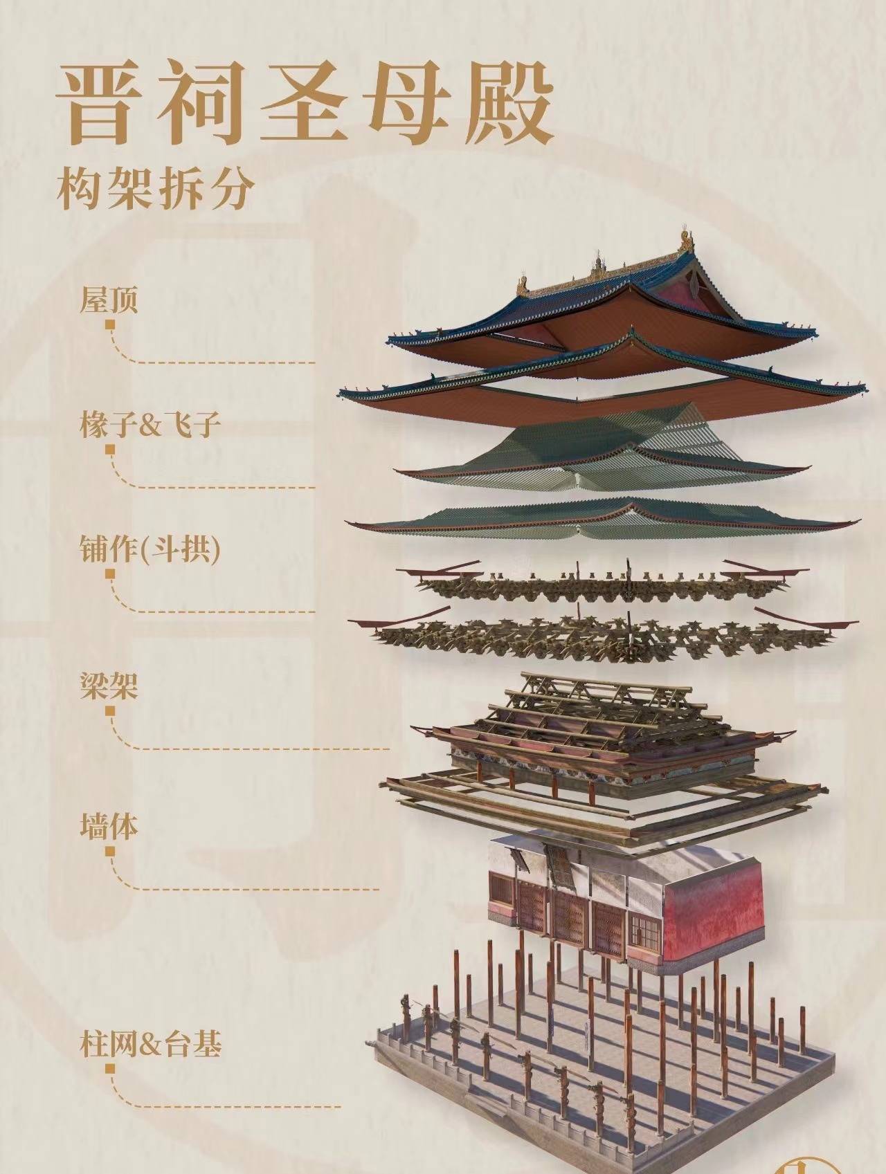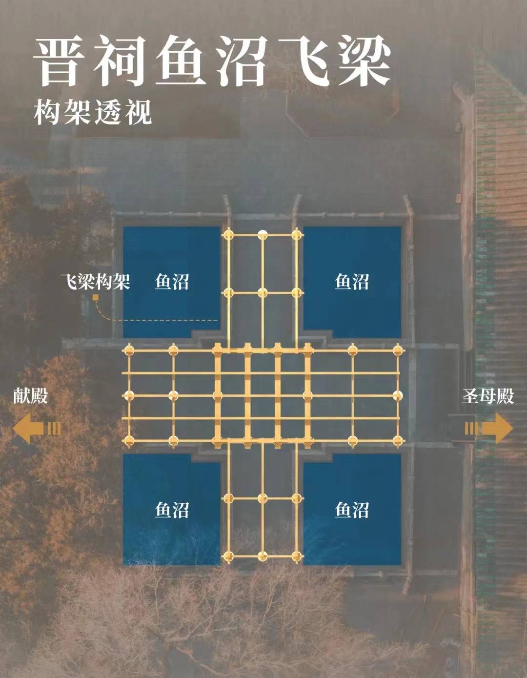 一進了晉祠大門,那一種説不出的美麗輝映的大花園,使我們驚喜愉悦,過於初時的期望。無以名之,只得叫它做花園。其實晉祠佈置又像廟觀的院落,又像華麗的宮苑,全部兼有開敞堂皇的局面和曲折深邃的雅趣,大殿樓閣在古樹婆娑池流映帶之間,實像個放大的私家園亭。——梁思成、林徽因《晉汾古建築預查紀略》