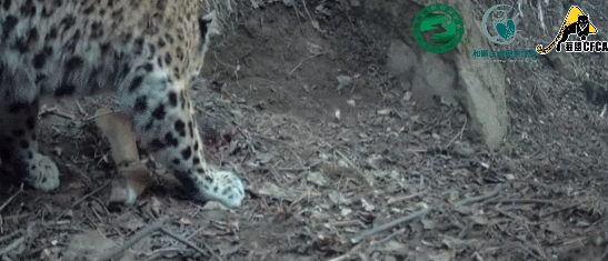 老豹子隊員二寶安設的相機,拍到豹叼走半截小牛腿 ©貓盟