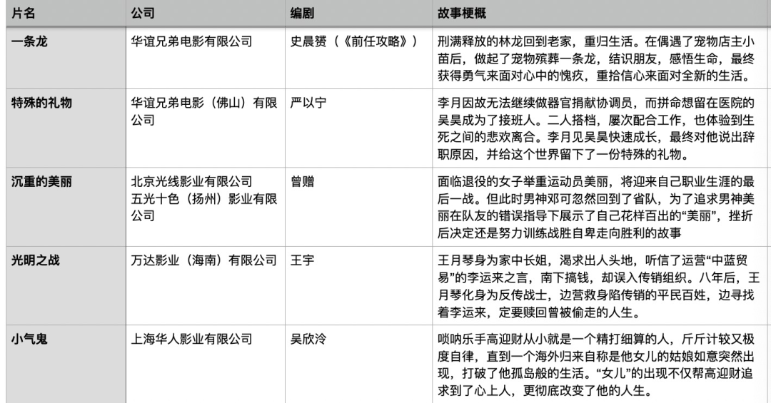 萬達也不甘人後,立項了《光明之戰》,講述的是反傳銷鬥士王月琴的故事,可能還融合了真人真事改編,故事類型也是迥異於萬達此前的創作。久未立項的華人影業也立項了一個特殊題材項目《小氣鬼》,講述嗩吶樂手的故事。