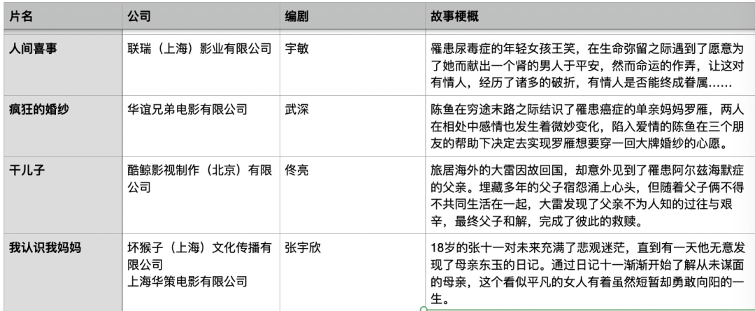 去年硬糖君就盤點過,市面上多了不少絕症題材的親情、愛情片項目。比如韓家女編劇的《盜時光》,涉及罹患阿茲海默症的主人公;麥特影業立項的《走失的女人》,涉及老年痴呆症的主人公;光線影業立項的《謝謝你來愛我》,涉及植物人主人公。