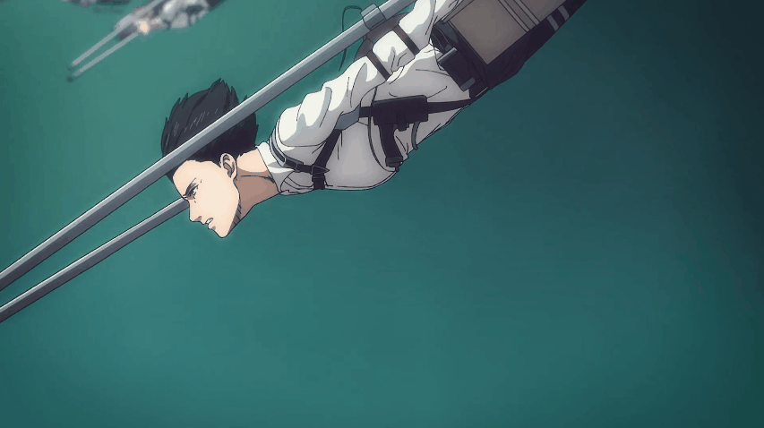將團長之位傳給阿爾敏,交代完一切之後,她便使用立體機動裝置衝向無數巨人。