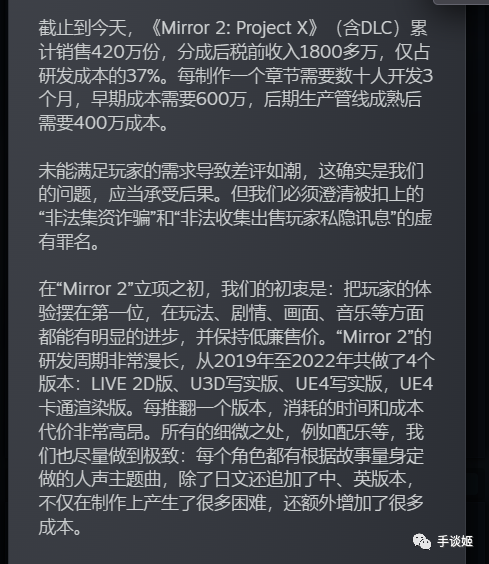 《Mirror 2》開發組宣佈破產,網友一起開香檳:好死!_風聞