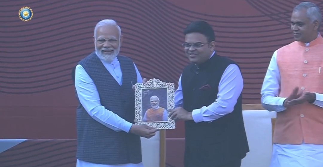 在莫迪訪問莫迪體育場後,傑伊·沙阿向莫迪贈送了照片