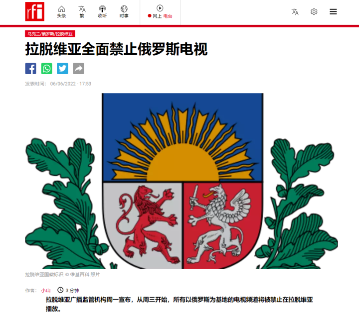 拉脱維亞全面禁止俄羅斯電視還有一些歐盟國家希望超過第六套制裁的要求。例如,拉脱維亞政府禁止80個俄羅斯電視頻道在其領土上播出。與此同時,波羅的海國家決定在其領土上為傳播失敗主義情緒的俄羅斯自由派反對派提供一個喉舌。拉脱維亞國家大眾電子媒體委員會(NEPLP)向前俄羅斯反對派電視頻道Dojd頒發了廣播許可證,該頻道於2022年3月初在莫斯科停止運營,其工作人員搬到了拉脱維亞。