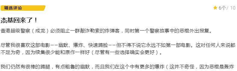 但奇怪的是,《警察故事續集》的口碑比第三部還要高,而且第四部的拍攝更細緻,着實令人驚喜。