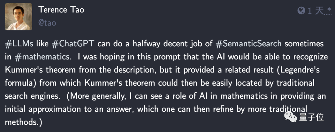 那話説回來,一個“數學菜雞”ChatGPT在一個大數學家手裏究竟能有什麼用處?