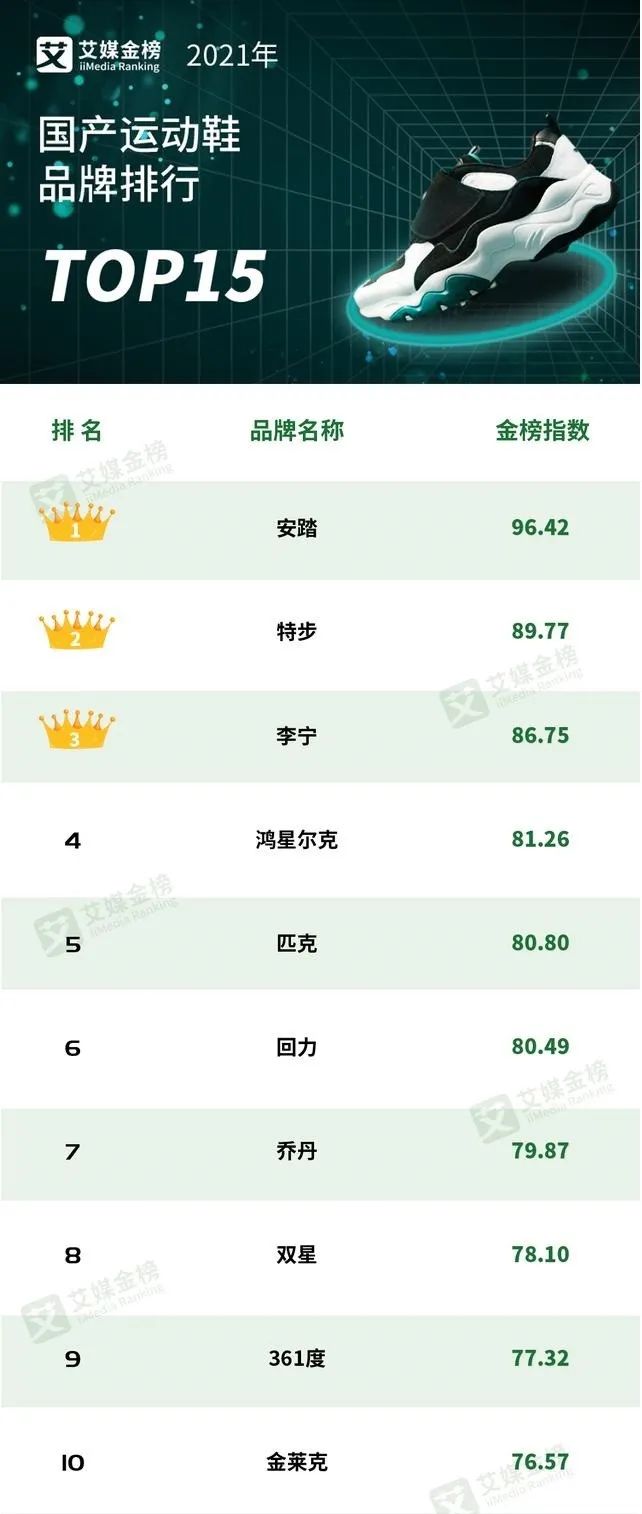 據艾媒金榜最新發布的《2021年國產運動鞋品牌排行TOP 15》顯示,喬丹體育位列第七位,排名已不如鴻星爾克、回力等品牌。